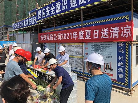 一是“夏日送清涼”慰問(wèn)活動(dòng)。7月15日上午,公司領(lǐng)導率隊到荊翰苑項目工地,看望慰問(wèn)了戰高溫、斗酷暑,堅守崗位的一線(xiàn)施工人員,為他們送去西瓜、礦泉水、藿香正氣液等防暑降溫物資,表達了敬意和謝意。并叮囑他們合理調整作息時(shí)間,避開(kāi)高溫時(shí)段作業(yè),注意防暑降溫,注重安全防范,保障身體健康和施工安全。
