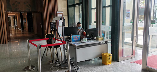 出入口防疫管理。根據“內防輸入,外防擴散,聯(lián)防聯(lián)控,群防群控”的防疫要求,場(chǎng)館只保留一個(gè)出入口,并在入口處設置兩臺自動(dòng)測溫儀且安排專(zhuān)人值守,值班人員負責登記來(lái)訪(fǎng)和上班人員信息及體溫監測工作。所有進(jìn)入場(chǎng)館人員均需佩戴口罩、掃碼登記、測溫合格后方可入場(chǎng)。