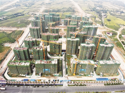 該項目于2020年12月1日開(kāi)工,目前所有住宅樓的建筑主體已起,其中十多棟已封頂,剩余住宅樓施工至10到16層,主體結構工程總體完成85%,計劃今年10月底完成所有住宅樓結構封頂。