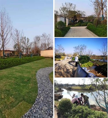 在景觀(guān)示范區施工現場(chǎng),各場(chǎng)景景觀(guān)主體施工、綠化喬灌木種植和水電預埋均已完成,各類(lèi)石材鋪貼施工臨近結束,正在進(jìn)行收邊及收口部位修補。