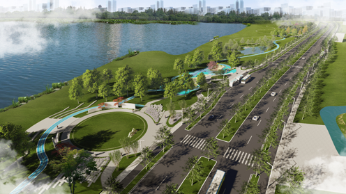 飛龍湖配套景觀(guān)提升工程占地面積約10萬(wàn)?O,規劃為一個(gè)自然、健康、浪漫、人與自然和諧共生的生態(tài)濱湖公園。公園主要設計有臨湖慢生活體驗區、藝術(shù)生活休閑區、濕地生活體驗區、運動(dòng)時(shí)尚生活區等,整體景觀(guān)設計以樹(shù)林草地為主,既滿(mǎn)足林下空間使用的功能性,也能實(shí)現濱水景觀(guān)的通透性。