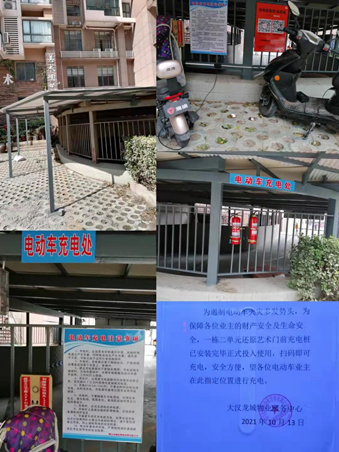 大漢龍城物業(yè)服務(wù)中心結合小區實(shí)際情況制定了詳細工作方案。一是進(jìn)行全方位宣傳,工作人員在項目南門(mén)入口顯眼處及樓棟單元入口分別放置宣傳牌進(jìn)行安全宣傳,同時(shí)通過(guò)業(yè)主群轉發(fā)電動(dòng)車(chē)引起火災的相關(guān)文章及圖片,嚴禁飛線(xiàn)充電、超時(shí)充電,嚴禁在樓道、消防通道、地下室存放電動(dòng)車(chē),提醒廣大業(yè)主認識違規充電的危害性;二是對電動(dòng)車(chē)進(jìn)行全面摸底排查,對車(chē)主信息登記造冊,建立車(chē)輛信息臺賬,現已完成車(chē)輛信息登記21輛,剩余電動(dòng)車(chē)信息正在逐一排查中;三是積極落實(shí)集中充電樁安裝工作,小區電動(dòng)車(chē)集中充電樁已在十一前全部完成安裝并投入使用,目前小區所有電動(dòng)車(chē)充電均在集中充電樁進(jìn)行規范充電。