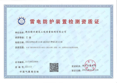近日,市城控集團直屬子公司湖北建勝公司從省氣象局領(lǐng)回了雷電防護裝置檢測乙級資質(zhì)證書(shū),成為荊門(mén)本地唯一具有該資質(zhì)的建設工程咨詢(xún)企業(yè)。這是該公司繼水利工程檢測后,又跨界拓展的新領(lǐng)域,標志著(zhù)其全資子公司湖北精興檢測公司工程檢測、水利檢測、防雷檢測三足鼎立的格局正式形成,其“扎根建工檢測,全面跨界檢測”的發(fā)展藍圖正逐步照進(jìn)現實(shí)。