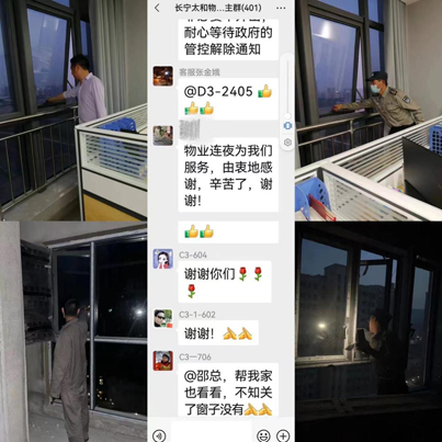 疫情無(wú)情,人間有愛(ài)。他們雖然不是一線(xiàn)醫護人員,卻是守衛業(yè)主家園的抗“疫”戰士,長(cháng)寧太和物業(yè)服務(wù)中心全體工作人員用堅守與奉獻,用“五心服務(wù)”黨建品牌,在這場(chǎng)疫情阻擊戰中播撒著(zhù)愛(ài)、傳遞著(zhù)溫暖。