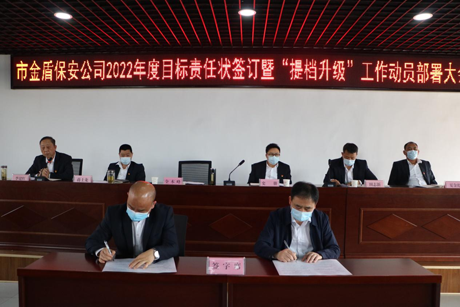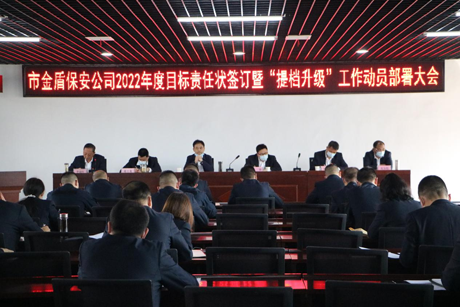 近日,市城控集團所屬子公司市金盾保安公司在培訓學(xué)校多功能會(huì )議室召開(kāi)公司2022年度目標責任狀簽訂暨“提檔升級”工作動(dòng)員部署大會(huì )。金盾保安公司班子成員、各子(分)公司班子及綜合辦公室負責人、機關(guān)全體工作人員參加會(huì )議。