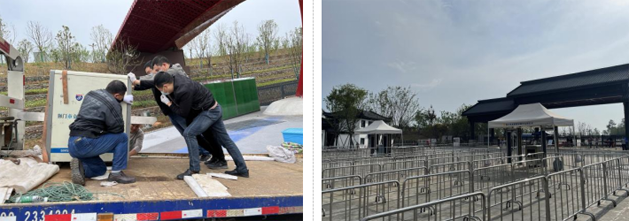 鑒于此次常態(tài)疫情防控下的安保工作要求更高、任務(wù)更重、責任更大,市金盾保安公司堅持整體作戰思路,一方面,以安保守護分公司保安員隊伍為主力,迅速集結大批專(zhuān)業(yè)安保勤務(wù)力量,依托培訓學(xué)校緊鑼密鼓展開(kāi)“人人參與、個(gè)個(gè)達標”的崗位練兵活動(dòng),從體能素質(zhì)、勤務(wù)流程、隊伍形象、應急處置等方面著(zhù)手,對安保、安檢整體工作內容進(jìn)行再培訓、再強化。另一方面,公司廣泛動(dòng)員市城控資產(chǎn)公司系統內機關(guān)工作人員積極支援4月28日至5月4日正式開(kāi)園期間的各項服務(wù)保障工作,大家紛紛響應,在現場(chǎng)人員引導、疫情防控、后勤保障等崗位“排兵布陣”,對安保工作進(jìn)行“再服務(wù)”。