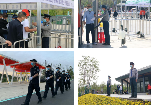 按照要求,市金盾保安公司于4月28日至5月4日每天派出至少180名安保人員入駐園區執勤,全體人員嚴格分班編組、定崗定責。安檢組在園區東門(mén)、南門(mén)、西門(mén)三個(gè)主要入口架設起6條游客緩沖通道和12道安檢門(mén),每條通道分別在入口、中途及安檢門(mén)處設置3道卡口,負責游客引導、疫情防控和安全檢查工作;安保巡邏組在園區內特色展館、廣場(chǎng)、游樂(lè )場(chǎng)、水域等重點(diǎn)部位布防警戒,實(shí)施24小時(shí)巡邏執勤。