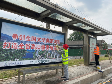 市城控集團所屬子公司市天城廣告公司作為我市戶(hù)外廣告特許經(jīng)營(yíng)的國有企業(yè),肩負著(zhù)城市公益宣傳和擦亮城市名片的重任。天城廣告公司于2022年1月接收市公交集團移交的190處公交站棚,截止目前,公司現經(jīng)營(yíng)管理公交站棚共333處,占全市公交站棚廣告資源的95%以上。為助力創(chuàng )建全國文明典型城市,解決部分公交站棚存在的外觀(guān)臟舊、生銹等問(wèn)題,公司于近日對象山大道中心血站至碧桂園站、培公大道迎春站至九曜物流站共38處公交站棚進(jìn)行了集中清洗。