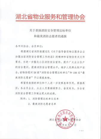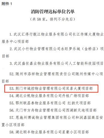 近日,市城控集團直屬子公司市城控物業(yè)公司雙喜大廈項目服務(wù)中心被湖北省物業(yè)服務(wù)和管理協(xié)會(huì )評為“湖北省消防安全管理達標單位”。在經(jīng)過(guò)嚴格審核、層層篩選后,該項目最終從湖北省眾多優(yōu)秀物業(yè)公司中脫穎而出,獲此殊榮。