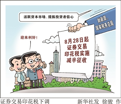 記者8月27日從財政部了解到,財政部、國家稅務(wù)總局當日發(fā)布公告稱(chēng),為活躍資本市場(chǎng)、提振投資者信心,自2023年8月28日起,證券交易印花稅實(shí)施減半征收。