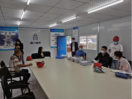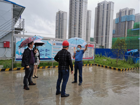 在項目工地出入口,楊維元首先查看了體溫檢測、實(shí)名登記情況,然后到生活區域、辦公場(chǎng)所查看了環(huán)境消殺、疫情物資配備及封閉管理情況,最后聽(tīng)取了龍山中央商務(wù)區項目概況及施工進(jìn)度匯報,詳細了解了項目防疫物資保障、工程疫情防控情況。隨后,楊維元對項目疫情防控工作表示了肯定。