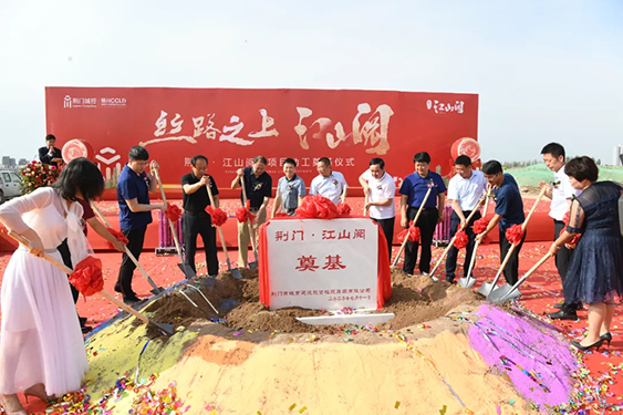 7月11日上午,市城控集團所屬荊門(mén)俊豐集團第一個(gè)“走出去”項目――荊門(mén)?江山閱奠基儀式在寧夏銀川永寧縣銀子湖畔隆重舉行。市政府國資委黨委委員田運華出席并宣布項目開(kāi)工。市城控集團黨委副書(shū)記、總經(jīng)理兼荊門(mén)城建集團黨委書(shū)記、董事長(cháng)豐金亮致辭。寧夏永寧縣委縣政府、寧夏亙元房地產(chǎn)公司、銀川市欣榮建設發(fā)展有限公司相關(guān)領(lǐng)導出席儀式。市政府辦公室秘書(shū)七科科長(cháng)許行文、市住建局總工程師程林、東寶區委常委兼區政府黨組成員梅勇應邀出席儀式。荊門(mén)城建集團總經(jīng)理兼荊門(mén)俊豐綠建集團董事長(cháng)葉東,城建集團副總經(jīng)理劉濤、文東升等參加儀式。城建集團副總經(jīng)理兼寧夏泊鷺銀湖公司董事長(cháng)陳慧講話(huà)。