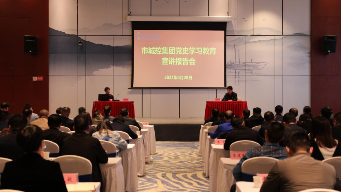 4月28日下午,市城控集團召開(kāi)黨史學(xué)習教育專(zhuān)題宣講報告會(huì )。市委黨校副校長(cháng)、市行政學(xué)院副院長(cháng)、學(xué)術(shù)委員會(huì )主任、教授張旭平應邀作專(zhuān)題輔導。市城控集團黨委副書(shū)記、總經(jīng)理程雄主持報告會(huì )。集團領(lǐng)導班子成員及機關(guān)全體黨員、集團所屬各公司黨委委員、黨總支委員及黨支部書(shū)記、副書(shū)記共140余人參加報告會(huì )。