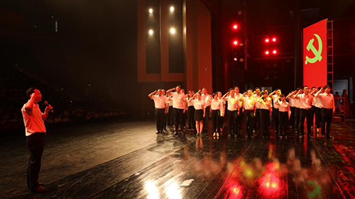 文藝匯演中,舉行了新黨員入黨宣誓儀式,在市城控集團黨委副書(shū)記張本華帶領(lǐng)下,新黨員上臺宣誓,面對鮮紅的黨旗莊嚴承諾,表達為共產(chǎn)主義事業(yè)奮斗終身的決心和信念。
