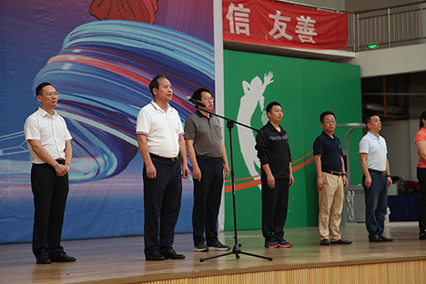 隨后,賽事現場(chǎng),裁判員、運動(dòng)員代表分別上臺莊嚴宣誓。杜佐鵬宣布籃球賽開(kāi)幕,在熱烈的掌聲中比賽徐徐拉開(kāi)帷幕,程雄為職工籃球賽揭幕戰開(kāi)球。