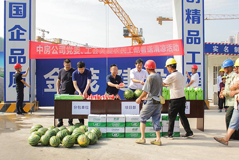 慰問(wèn)小組先后來(lái)到中房?銘庭世家、中房?攬月星辰、荊楚理工學(xué)院學(xué)生公寓、民兵訓練基地等項目部,為頂酷暑、戰高溫的一線(xiàn)人員送來(lái)礦泉水、西瓜、葡萄、藿香正氣液、仁丹等防暑降溫物資,讓大家感受到了夏日里的一抹清涼。 每到一處,慰問(wèn)小組將關(guān)懷物資送到了一線(xiàn)人員手中,并對他們的艱辛付出表示誠摯感謝,同時(shí)叮囑大家在緊張工作的同時(shí),要特別注意做好自身防暑降溫工作,保證安全、生產(chǎn)兩不誤。慰問(wèn)小組還要求項目部要高度重視高溫季節安全生產(chǎn)和防暑作業(yè),根據夏季高溫時(shí)段,靈活安排現場(chǎng)作業(yè)時(shí)間,認真落實(shí)各項防暑降溫措施,做好勞動(dòng)保護工作,盡可能避開(kāi)高溫時(shí)段在烈日下和極度悶熱環(huán)境中從事強體力勞動(dòng)。