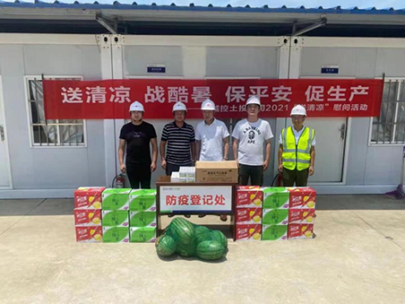 同日,市城控集團直屬子公司市城控土投公司積極組織,精心籌備,及時(shí)開(kāi)展了“送清涼、戰酷暑、保平安、促生產(chǎn)”慰問(wèn)活動(dòng)。清涼降暑的飲料、西瓜和解暑藥品送到了一線(xiàn)施工人員的手中,表達了公司關(guān)心、體恤一線(xiàn)施工作業(yè)人員的濃濃情意,給炎炎夏日帶來(lái)了一絲愜意,一縷清涼。