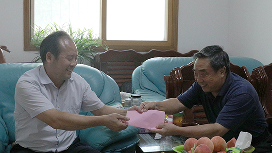7月27日,集團黨委副書(shū)記、總經(jīng)理程雄一行,慰問(wèn)了先創(chuàng )市政光榮在黨50年黨員代表向仁斌同志??赐?,程雄與向仁斌敘家常,關(guān)切詢(xún)問(wèn)他的生活起居和身體狀況。向仁斌說(shuō):看到大家專(zhuān)門(mén)來(lái)看望我,非常高興,非常感謝集團黨委一直以來(lái)對退休老同志的關(guān)心關(guān)愛(ài),讓我們??年生活幸福美滿(mǎn)。
