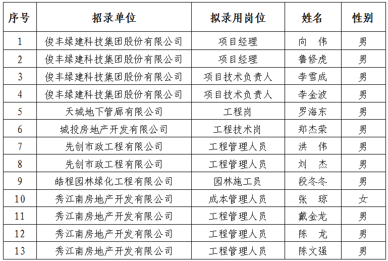 市城控集團2021年度員工招聘(工程類(lèi))擬錄用人員公示公告