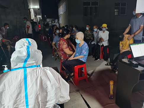 8月8日22點(diǎn),醫務(wù)人員到村開(kāi)展核酸采樣檢測,現場(chǎng)已設置了警戒線(xiàn),擺放了核酸檢測流程圖等各種指示牌。在駐村隊員帶頭表率,精細指揮調度下,現場(chǎng)按照老弱病殘優(yōu)先原則有序排成長(cháng)隊,受檢人員單向流動(dòng),嚴格落實(shí)一米間隔要求,各環(huán)節分工明確,從登記、檢測到秩序維護,人人盡職盡責。