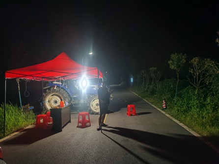 按照鎮政府統一部署,8月8日起,全村迅速行動(dòng)起來(lái)實(shí)行封閉管理。封閉3處進(jìn)村通道,在兩處道路設置卡口,工作隊、村兩委、志愿者全員上陣,24小時(shí)輪流值守。嚴格實(shí)行外來(lái)人員進(jìn)出登記、測溫,無(wú)通行證一律不放行。