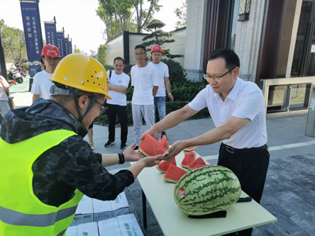 張本華帶領(lǐng)園林建設集團班子成員深入秀江南、三國文化創(chuàng )意產(chǎn)業(yè)園項目現場(chǎng),慰問(wèn)一線(xiàn)施工人員,發(fā)放礦泉水、西瓜等防暑降溫物品,并認真察看項目建設情況,詳細了解基層群眾工作狀況。張本華對一線(xiàn)工作人員辛勤付出給予高度贊揚,并要求項目負責同志在嚴格落實(shí)施工建設任務(wù)的同時(shí),認真做好防暑保障措施,儲備發(fā)放防暑救護應急藥品,彈性安排作息時(shí)間,增強自我防護意識,切實(shí)保障職工生產(chǎn)安全和身體健康。