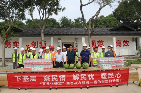 程雄一行深入項目現場(chǎng),了解項目建設狀況,詳細了解基層群眾工作,并為奮戰在項目一線(xiàn)人員送去礦泉水、西瓜、防暑降溫藥品等慰問(wèn)物質(zhì)。程雄與一線(xiàn)員工交心談心,仔細了解他們的生活和工作情況,代表集團對他們頂高溫、戰酷暑,全力完成項目建設任務(wù)的敬業(yè)精神表示了贊揚與感謝,叮囑他們在堅守崗位的同時(shí),注意防暑降溫,將安全生產(chǎn)落實(shí)到實(shí)際行動(dòng)中,并要求大家科學(xué)合理地安排好作息時(shí)間,建立錯時(shí)工作制,盡可能避開(kāi)高溫時(shí)段,防止高溫中署,確保高溫條件下生產(chǎn)安全和身體健康,以更好的狀態(tài)投入到工作中。