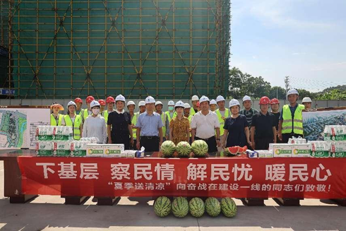 張康秀一行深入項目現場(chǎng),詳細了解了項目建設進(jìn)度,并為項目施工人員送去西瓜、金銀花露等防暑物資,叮囑他們在高溫天氣下工作要注意防暑降溫。同時(shí),要求項目負責人合理安排作息時(shí)間,避開(kāi)高溫時(shí)段作業(yè),切實(shí)保障工人施工安全。