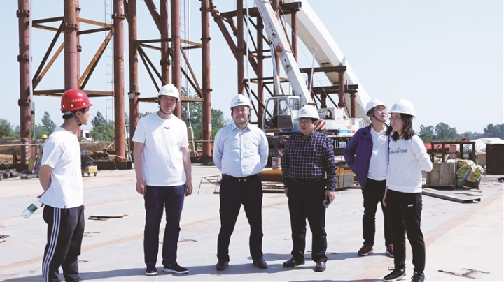 荊門(mén)城控集團黨委書(shū)記、董事長(cháng)杜佐鵬(左三)調研漳河新區鳳袁路片區