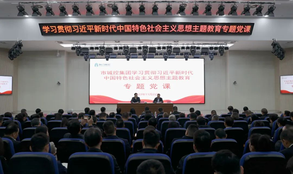 11月22日上午,市城控集團黨委書(shū)記、董事長(cháng)、總經(jīng)理程雄以《深學(xué)細悟篤行 聚焦價(jià)值創(chuàng )造 奮力譜寫(xiě)中國式現代化建設的城控新篇章》為題講授專(zhuān)題黨課。市政府國資委黨委委員、副主任張斌一行到會(huì )指導。集團機關(guān)干部職工、各直屬子公司及所屬公司班子成員、后備干部參加。