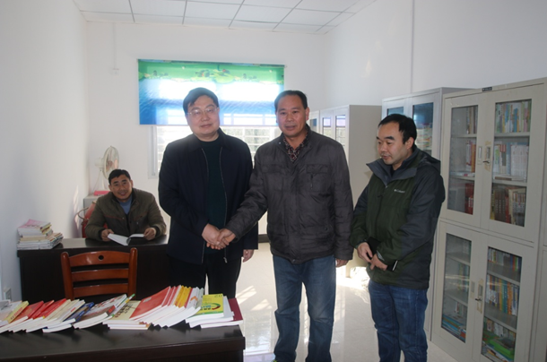 圖為城投公司黨委委員、副總經(jīng)理劉兵法(左一)向蔣集村送去了十九大及法律方面的書(shū)籍