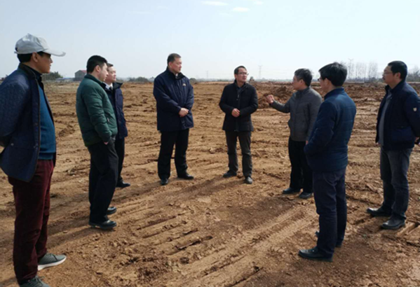 圖為李繼軍一行調研荊門(mén)保稅物流中心(B型)項目現場(chǎng)