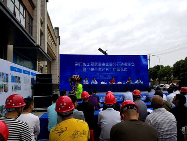 5月28日,市住建委在荊門(mén)萬(wàn)達廣場(chǎng)項目施工現場(chǎng)組織召開(kāi)“荊門(mén)市工程質(zhì)量安全提升行動(dòng)觀(guān)摩會(huì )暨‘安全生產(chǎn)月’啟動(dòng)儀式”,各縣市區建設主管部門(mén),全市各建設、施工、監理企業(yè)負責人,以及城建集團項目管理人員參加了觀(guān)摩學(xué)習。