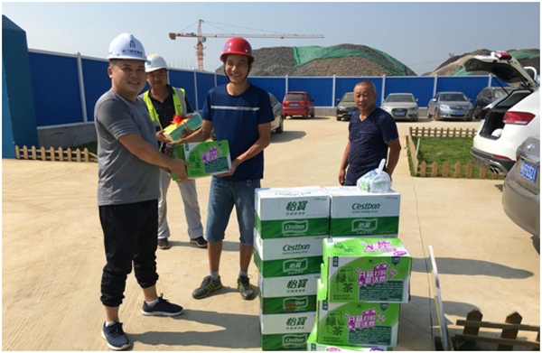 活動(dòng)當天,工作人員將滿(mǎn)滿(mǎn)一車(chē)礦泉水和綠茶送到了荊門(mén)保稅物流中心(B型)工地現場(chǎng),為工地上高溫作業(yè)的工人送去了夏日里的清涼,鼓舞了一線(xiàn)工人的干勁,為完成各項施工目標提供了后勤保障。(文:張宇,圖:郭安冬)