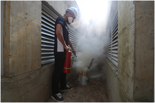活動(dòng)一開(kāi)始,管廊公司管理人員講解了管廊消防安全知識,強調了管線(xiàn)入廊安全注意事項,演示了防毒面具、氣體檢測儀、對講機、干粉滅火器等器械的使用方法。隨后在綜合管廊內部進(jìn)行了消防應急演練,模擬管廊內部起火,管廊公司立即啟動(dòng)應急預案,疏散現場(chǎng)作業(yè)人員,并使用滅火器進(jìn)行滅火。