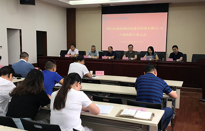 8月27日,荊門(mén)市鑫建城鎮化建設投資有限公司召開(kāi)干部任職宣布大會(huì )。市城控集團黨委副書(shū)記、總經(jīng)理、城建集團黨委書(shū)記、董事長(cháng)豐金亮出席會(huì )議并講話(huà),城建集團黨委副書(shū)記、總經(jīng)理葉東主持會(huì )議。城建集團紀委書(shū)記蔣紅艷、副總經(jīng)理肖德金出席會(huì )議。鑫建公司領(lǐng)導班子及全體干部職工參加會(huì )議。