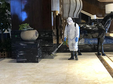 城控凱瑞國際酒店工作人員每天堅持定時(shí)消毒