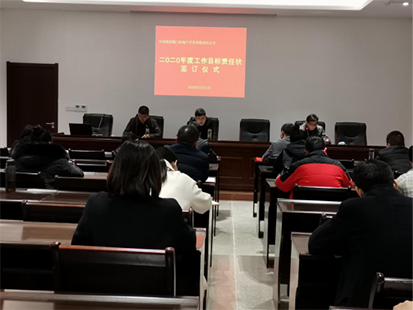 公司主要領(lǐng)導與參會(huì )的各部室、單位負責人當場(chǎng)簽訂2020年工作目標管理責任狀。責任狀內容包括共性和個(gè)性工作目標兩大類(lèi)。共性工作目標明確了全公司的年度總產(chǎn)值、凈利潤以及黨建、黨風(fēng)廉政建設、意識形態(tài)、綜合治理、文明創(chuàng )建、員工管理和新聞信息等責任要求。個(gè)性工作目標根據各部室、單位工作職責以及黨委會(huì )確定的經(jīng)濟指標而確定。所有責任目標緊貼公司發(fā)展戰略,與日常制度管理、年終績(jì)效考核掛鉤,實(shí)行硬賬硬結。