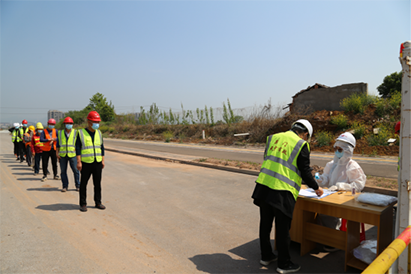 圖為進(jìn)場(chǎng)前人員登記、掃碼及體溫檢測
