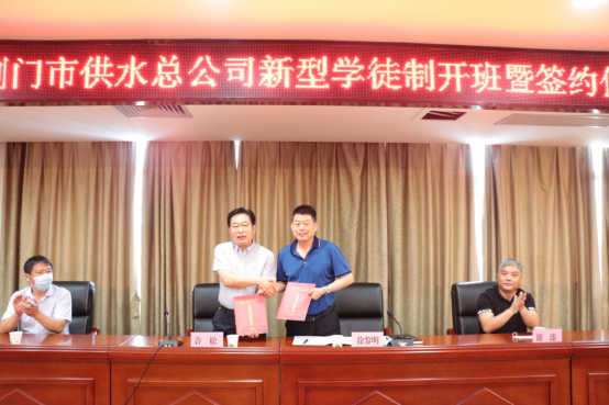 6月10日上午,市城控集團所屬市供水總公司與荊門(mén)技師學(xué)院簽訂《校企合作協(xié)議》《企業(yè)新型學(xué)徒制辦班協(xié)議》,搭建起培養高技能人才培養高速通道,開(kāi)啟訂單培養企業(yè)工匠新模式。簽約完成后舉行了新型學(xué)徒制首期開(kāi)班儀式,校企雙方近40人參加活動(dòng)。
