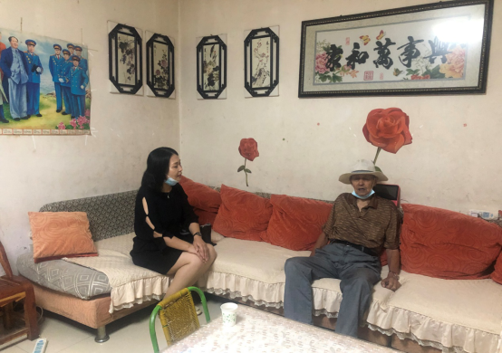 圖為慰問(wèn)天宇市政前蘇聯(lián)歸國華僑、困難老黨員向德發(fā)