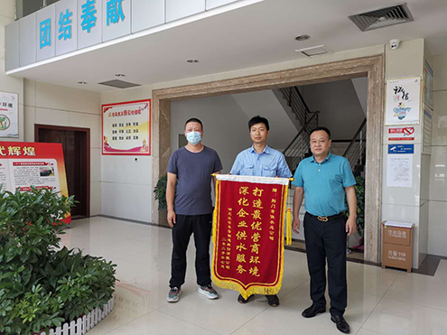 “感謝市供水總公司解決廠(chǎng)區管道漏水的大難題,你們辛苦了!”8月3日下午,湖北航特裝備制造股份有限公司(以下簡(jiǎn)稱(chēng)航特公司)相關(guān)負責人將一面印有“打造最優(yōu)營(yíng)商環(huán)境 深化企業(yè)供水服務(wù)”的鮮艷錦旗送到市城控集團所屬市供水總公司。